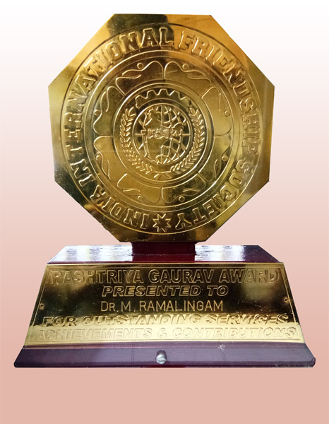 Rashtriya Gaurav Award, for meritorious service by India International Friendship Society, New Delhi